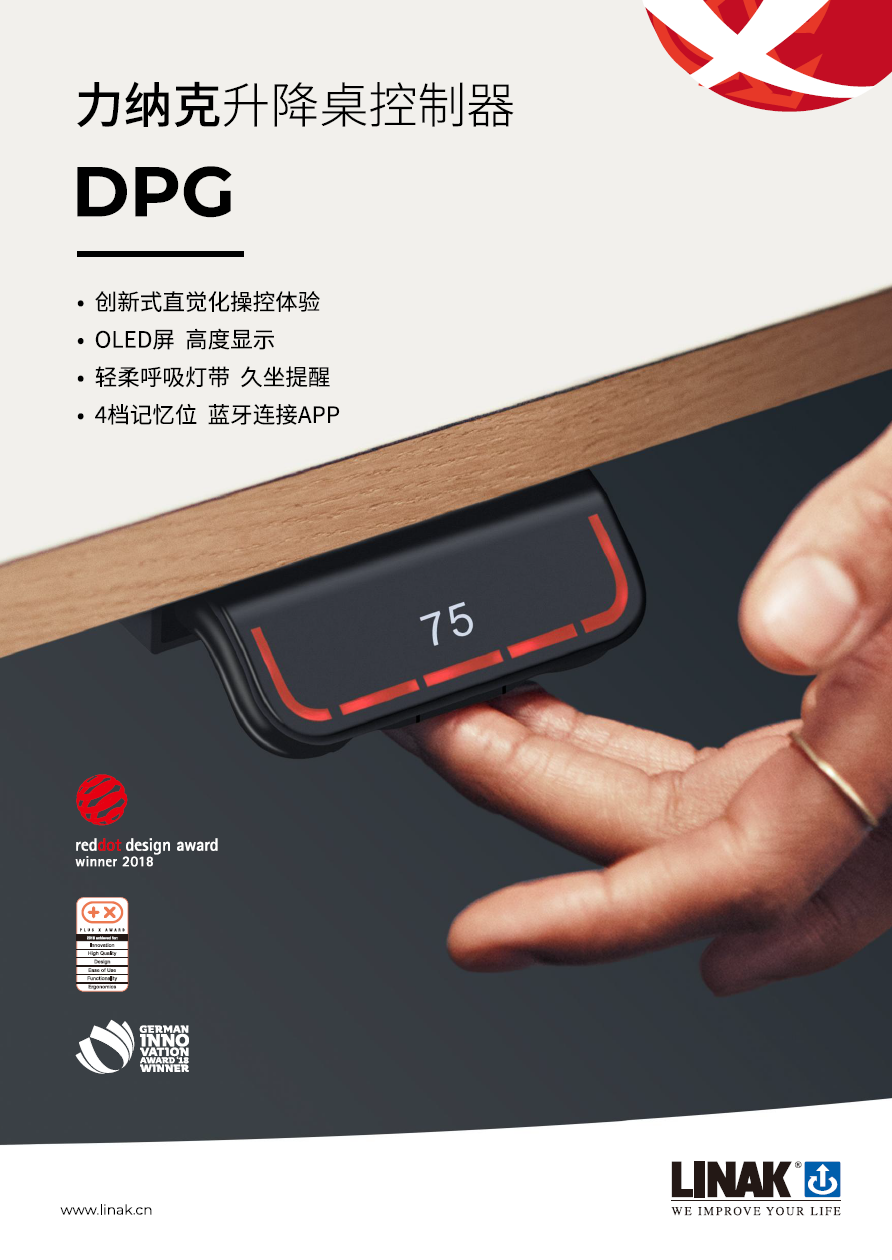 LINAK®(力納克®)是一家始創于1907年世界領先的優質家具電動升降系統解決方案供應商。如今,全球已有超過10,000,000套配備LINAK升降系統的升降辦公桌正在被使用。2018年,升降桌控制器DPG1C憑借出眾的設計和功能榮獲德國 “紅點獎”(Reddot),成為行業內首家斬獲紅點獎的企業。